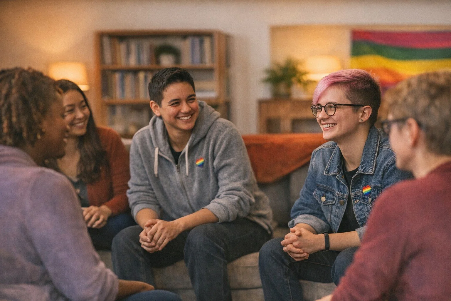 A supportive, affirming space for LGBTQ+ and queer adults to explore identity, emotion, belonging, and community.